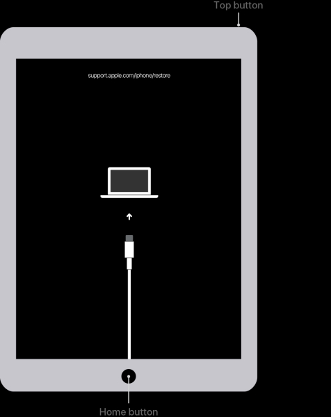 Note: As for new iPad models without a Home button, power off your iPad and find out the Top button. Keep holding the Top button while connecting your iPad cord to your computer simultaneously. Keep holding the Top button until your iPad enters recovery mode.