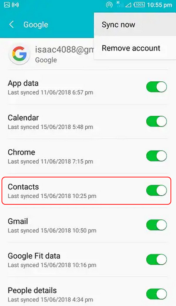 Step 2After taping the Accounts and Sync option, choose your Gmail account setup page. Then, Allow the Sync Contacts options.