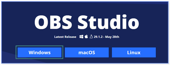 Step 1Please visit the official webpage of OBS Studio to see the full description of it. After that, you will see the operating system it supports. To download it, click the Windows, macOS, or Linux button. After that, set up its downloaded file. Click the Finish button to launch it on your computer afterward.